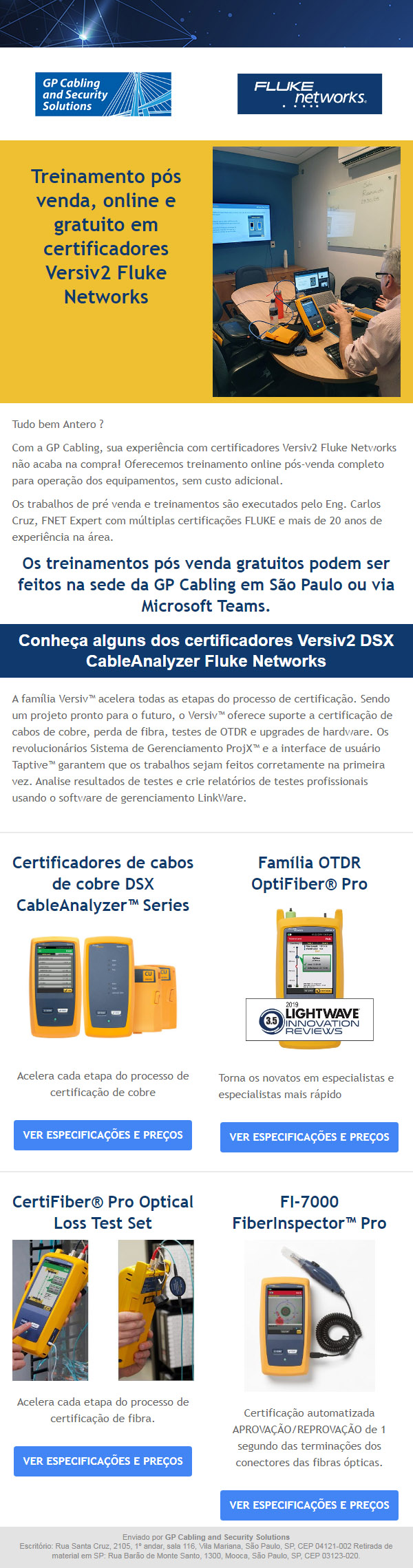 Compre um certificador Fluke e GANHE um treinamento online pós-venda gratuito.